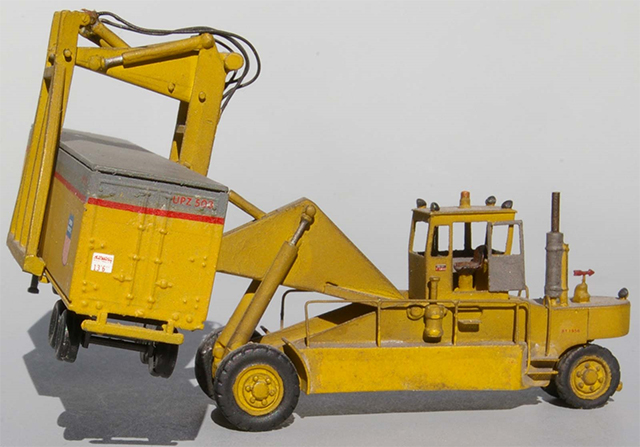 Bob Ray built, painted and detailed this N Scale of Nevada P-70 Piggy-Packer kit in the early 1990s. The trailer is a Con-Cor 40-foot dry van that Bob painted and decaled in a freelanced Union Pacific paint scheme.